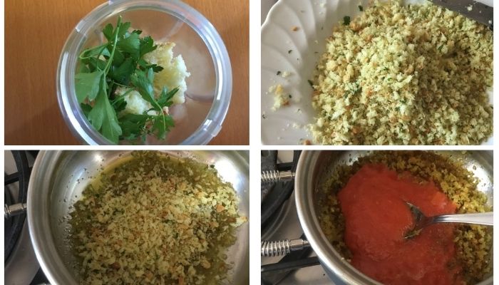L’obiettivo è ottenere una sorta di pangrattato aromatizzato, che darà corpo e sapore al sugo.